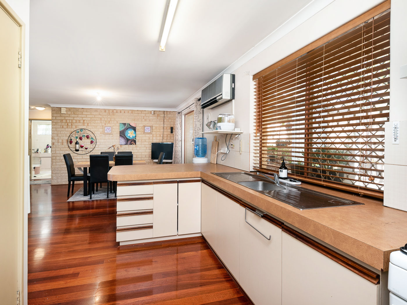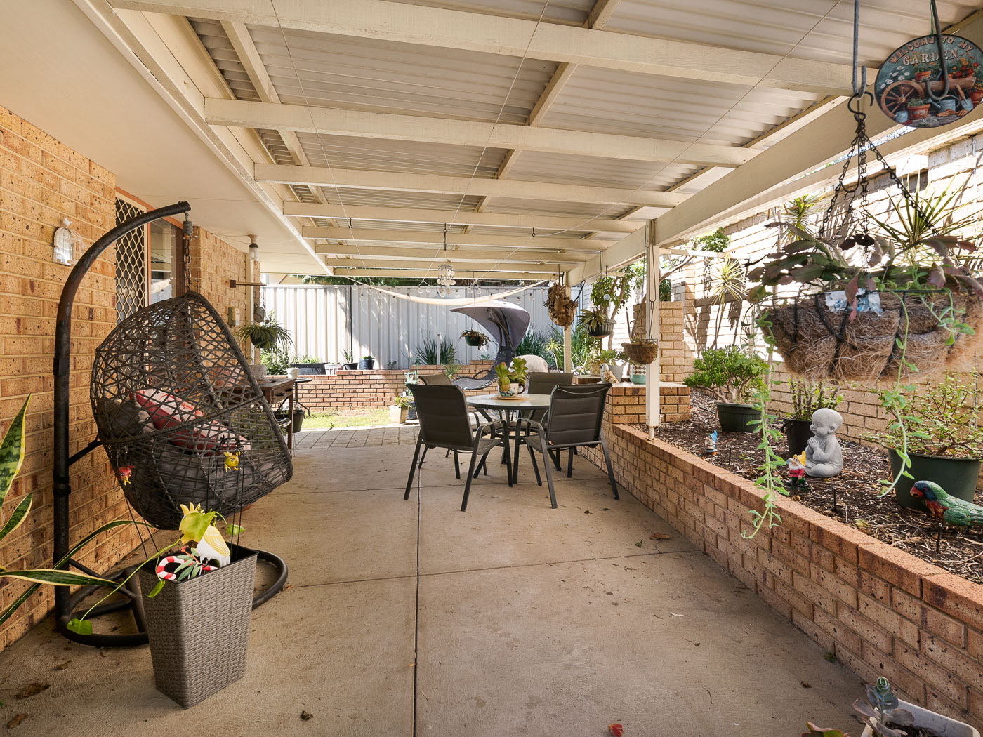A very neatly presented and well constructed Brick and Tile home that not only offers a functional and practical floorplan with separate living and dining spaces, it also offers generous bedrooms, bathroom including a bath and shower, a separate WC, and storage. PLUS, a beautiful north facing garden aspect and easy care outdoor all year round entertaining. With feature jarrah timber flooring, air-conditioning, gas connected and undercover parking for 2 cars (1 garage and 1 carport) along with secure reticulated grounds making it perfect for the young ones and pets!